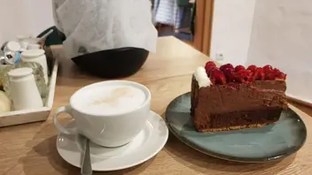 Unbedingt zuerst einen Sitzplatz (drinnen, draußen, vor oder hinter dem Café / Restaurant) suchen und erst dann anstellen zum Torte aussuchen.